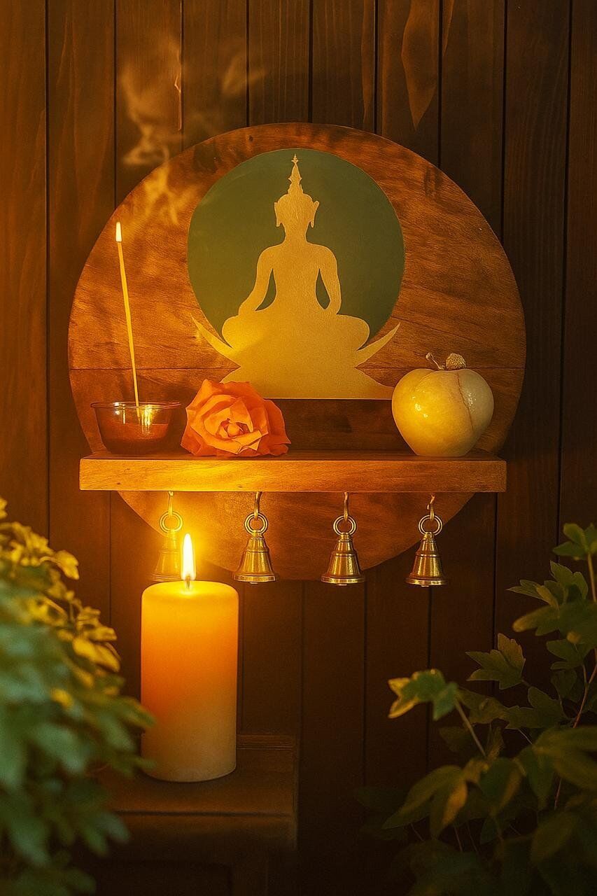 Handmade & Hand-Painted Divine Art Prayer / mandir Shelves Exclusively designed by us, these elegant wooden prayer shelves blend divine art with minimalist charm. Handcrafted and hand-painted with sacred detail, they are compact, not bulky or gaudy—perfect for small spaces seeking spiritual warmth. A signature piece you won’t find anywhere else.