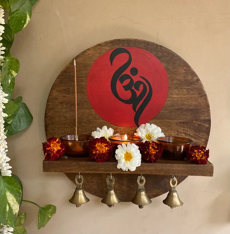 Handmade & Hand-Painted Divine Art Prayer / mandir Shelves Exclusively designed by us, these elegant wooden prayer shelves blend divine art with minimalist charm. Handcrafted and hand-painted with sacred detail, they are compact, not bulky or gaudy—perfect for small spaces seeking spiritual warmth. A signature piece you won’t find anywhere else.